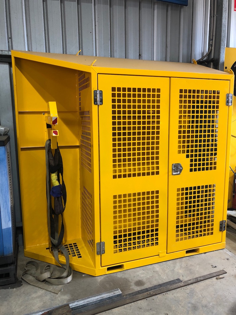 2200W x 2200H x 700D. Rigging cabinet includes Out-of-Service rigging gear storage rack for secure storage of tagged-out equipment.